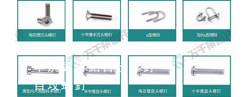 1.機螺釘 2.自攻螺釘 3.鉆尾螺釘 4.墻板釘 5.纖維板釘 6.木螺釘7.六角木螺釘 8.不脫出螺釘 9.組合螺釘 10.微型螺釘 11.家具螺釘 12.電子螺釘 頭型 :1.六角頭(hexagon head) 2.六角頭法蘭面(hexagon head w