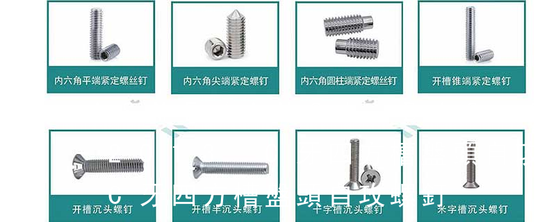 自切自攻螺釘有以下幾種型式:十字槽盤頭自切自攻螺釘,十字槽沉頭自切自攻螺釘。十字槽半沉頭自切自攻螺釘,六角頭自切自攻螺釘。3、自擠自攻螺釘(自攻鎖緊螺釘)自擠自攻螺釘?shù)穆菁y一般為機螺紋,很少采用自攻螺紋。在扳擰
